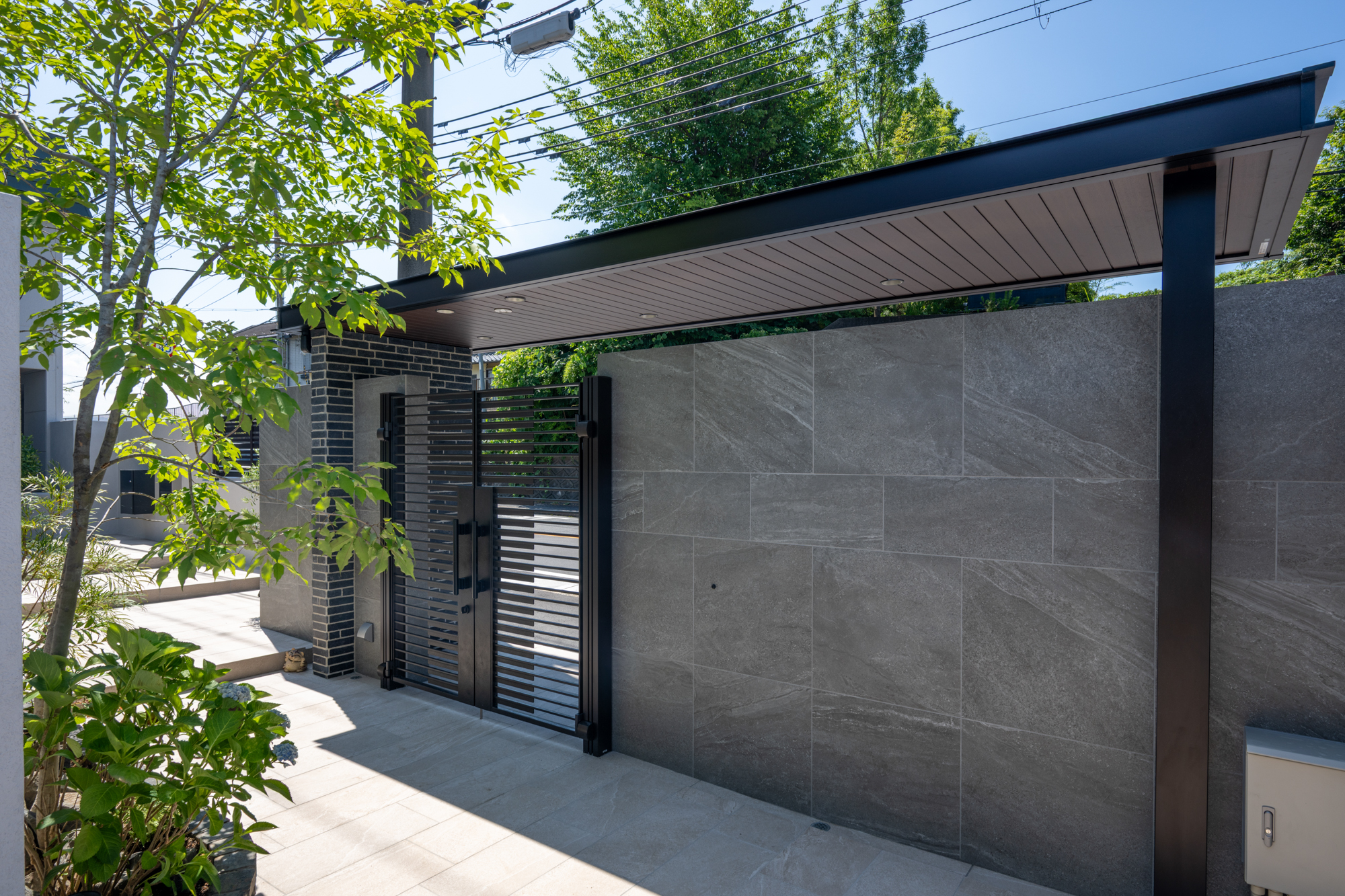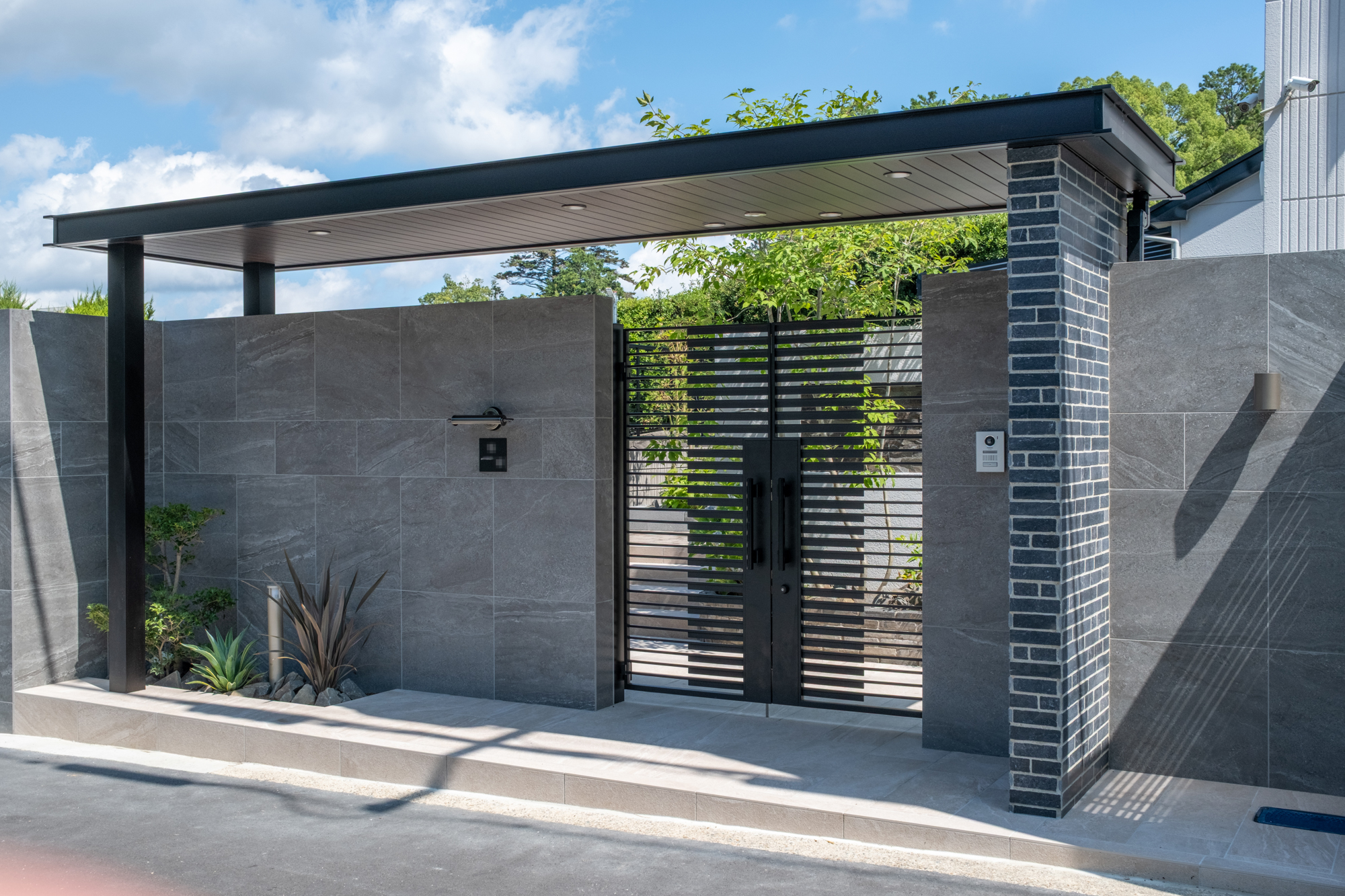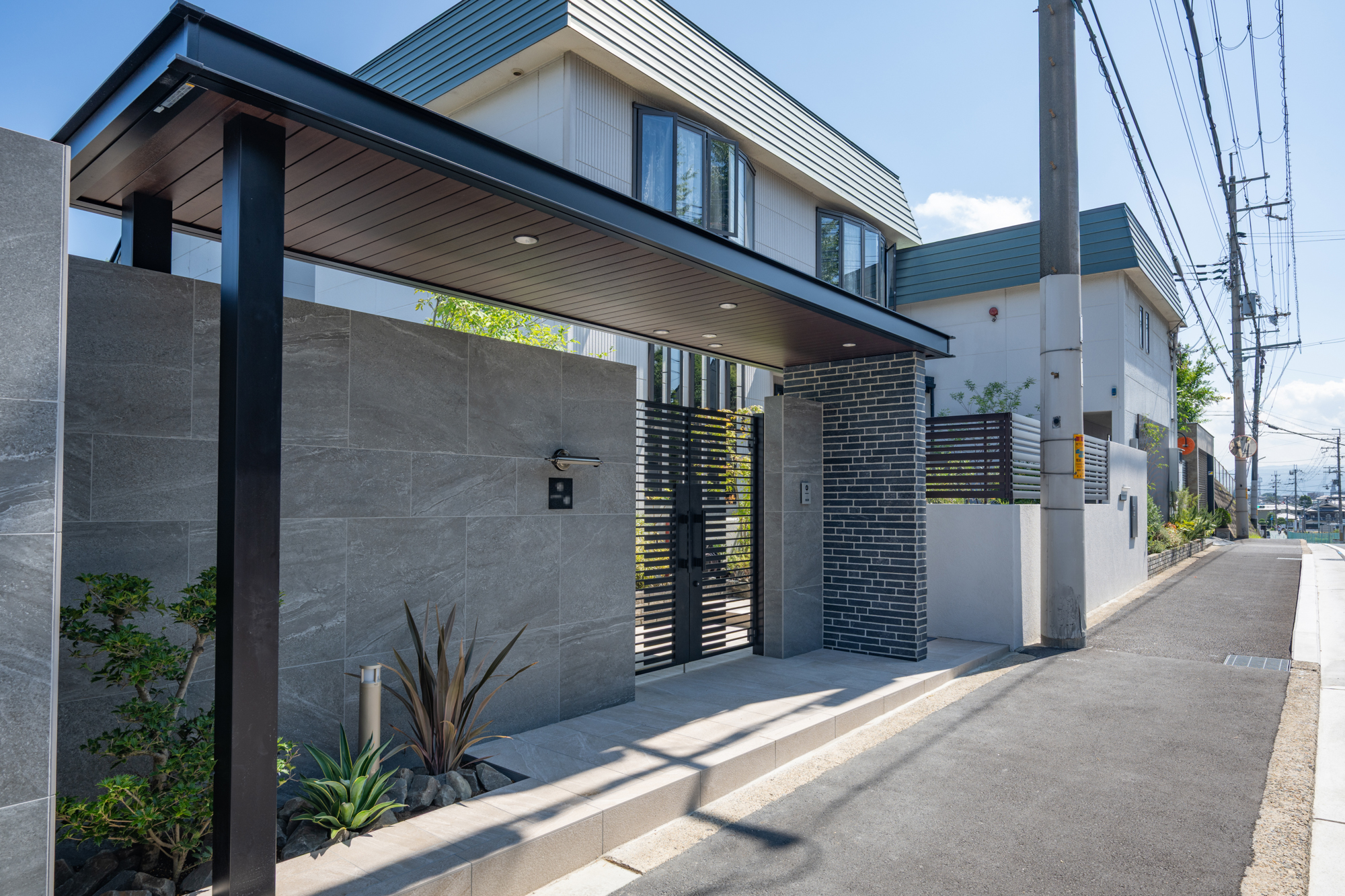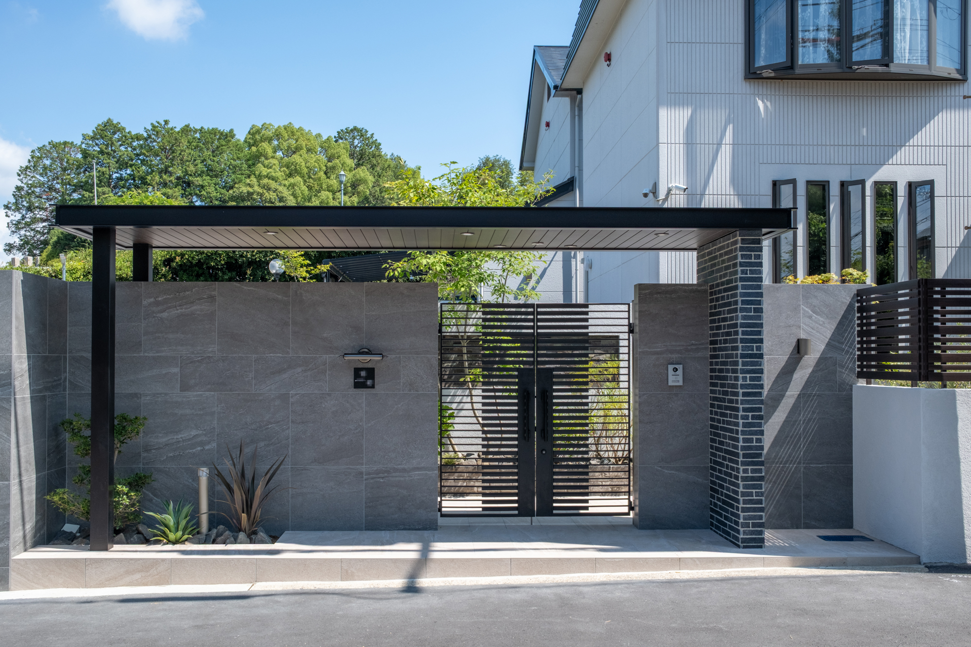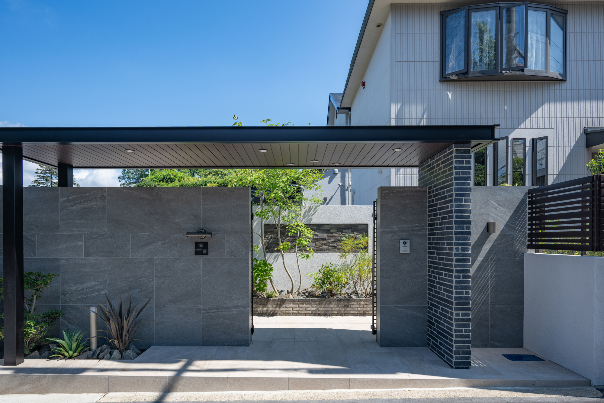 住まいの印象を引き締める、重厚感あるモダン外構