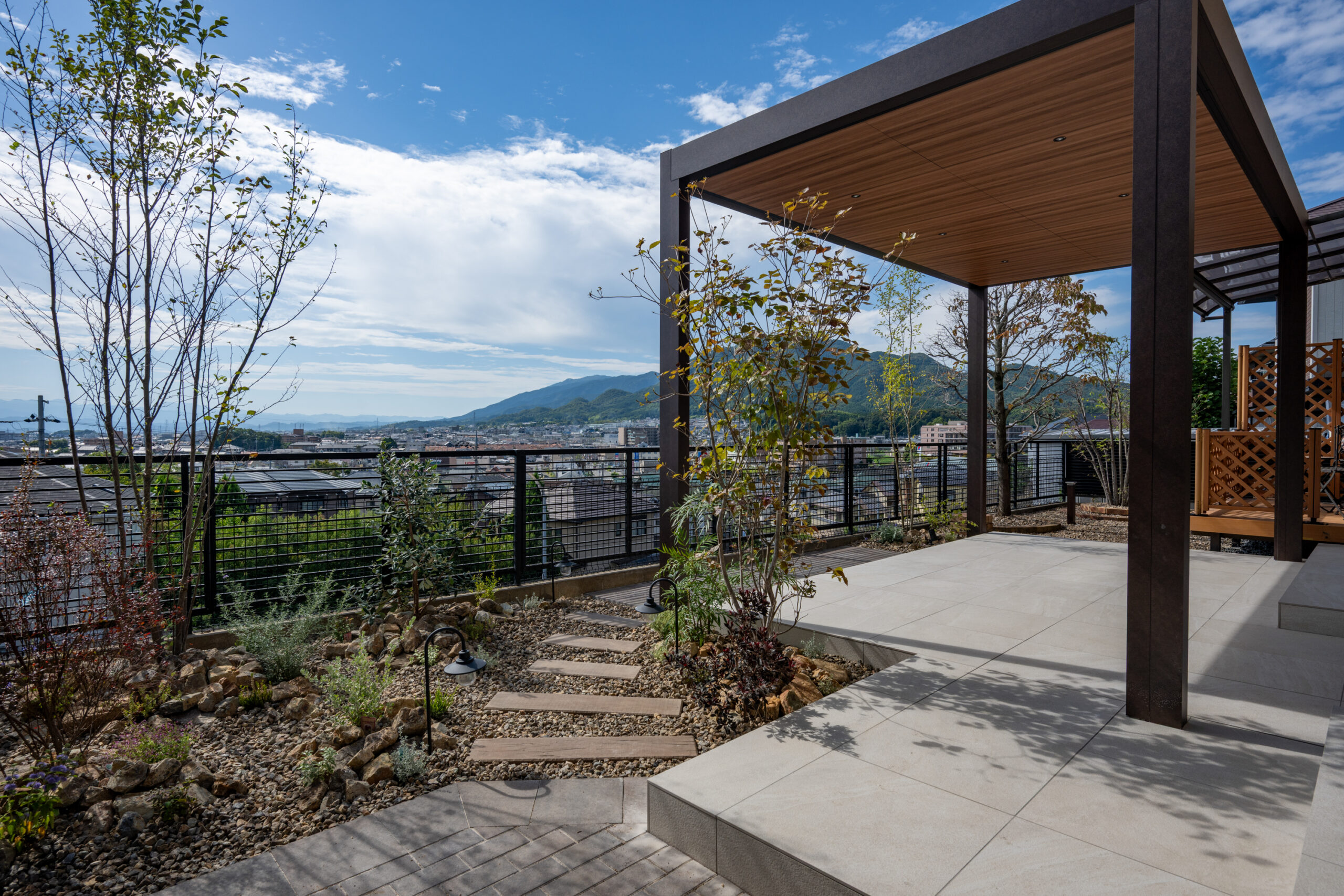 シンプルモダンに植物が映える洗練された外構