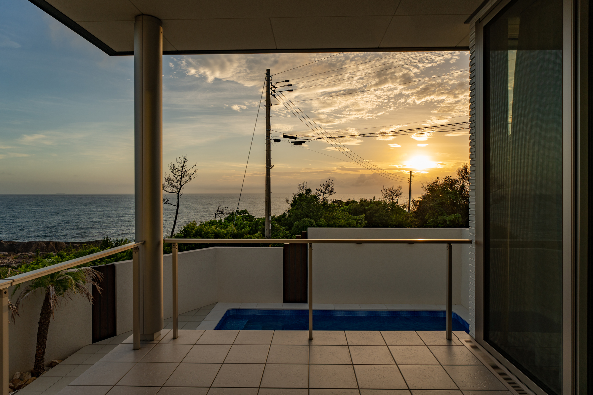 プール内にもライトを設置し、プールが青く光り幻想的な演出に